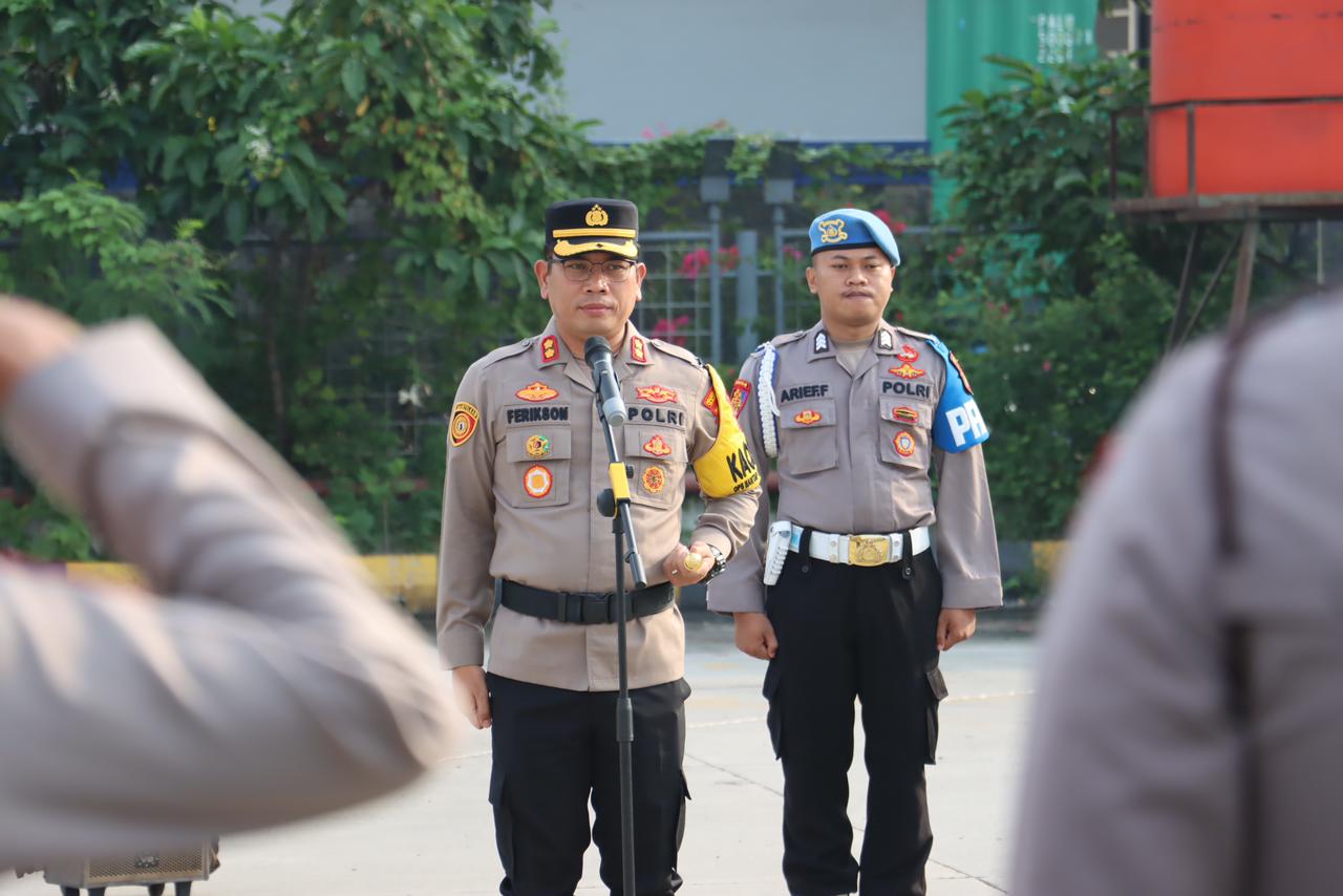 Kapolres Pelabuhan Tanjung Priok AKBP Ferikson Tampubolon,S.I.K.,M.H memimpin apel Pengamanan Hari Buruh Sedunia (Mayday) di Lapangan Halal Logistic Tanjung Priok. (Rabu, 01/05/2024)