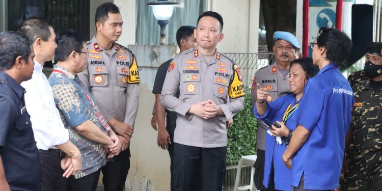 Kapolres Tangerang Selatan, AKBP Victor D. H. Inkirawang, S.H., S.I.K., M.Si., didampingi Kapolsek Serpong melakukan kunjungan ke Gereja Santa Monika di Jalan Alamanda Sek 1.2, Kelurahan Rawa Buntu, Kecamatan Serpong. Kunjungan tersebut dilakukan untuk memastikan pengamanan ibadah Natal 2024 berjalan aman dan kondusif.