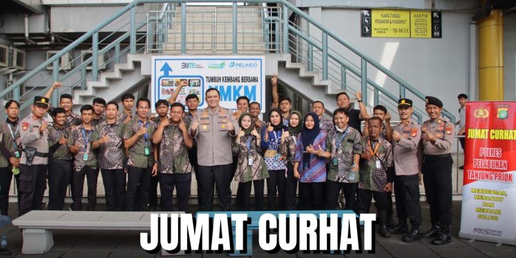 Jakarta – Kapolres Pelabuhan Tanjung Priok, AKBP Dr. Martuasah Hermindo Tobing, S.I.K., M.H., mengadakan kegiatan Jumat Curhat di Terminal Nusantara Pura II Pelni, Pelabuhan Tanjung Priok, Jumat (10/1/2025). Acara ini bertujuan mempererat komunikasi dengan masyarakat sekaligus memastikan situasi keamanan dan ketertiban masyarakat (Kamtibmas) tetap kondusif.