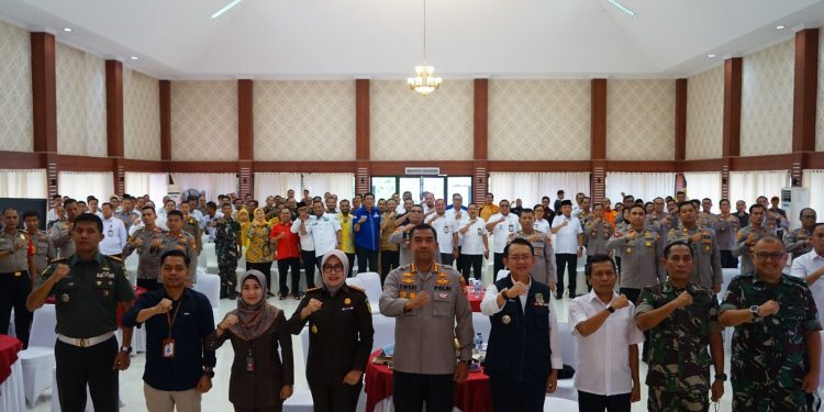 Bekasi – Kapolres Metro Bekasi, Kombes Pol. Twedi Aditya Bennyahdi, bersama Forum Koordinasi Pimpinan Daerah (Forkopimda) Kabupaten Bekasi menggelar rapat Koordinasi Lintas Sektoral untuk membahas kesiapan pengamanan Operasi Kewilayahan Mantap Praja Jaya 2024. Pertemuan ini bertujuan memastikan kesiapan semua pihak menjelang Pemilihan Kepala Daerah serentak yang akan dilaksanakan pada tahun 2024. Di Gedung Promoter Polres Metro Bekasi Jl. Ki Hajar Dewantara, Jababeka, Cikarang Utara, Kabuapten Bekasi. Rabu (7/8/2024).