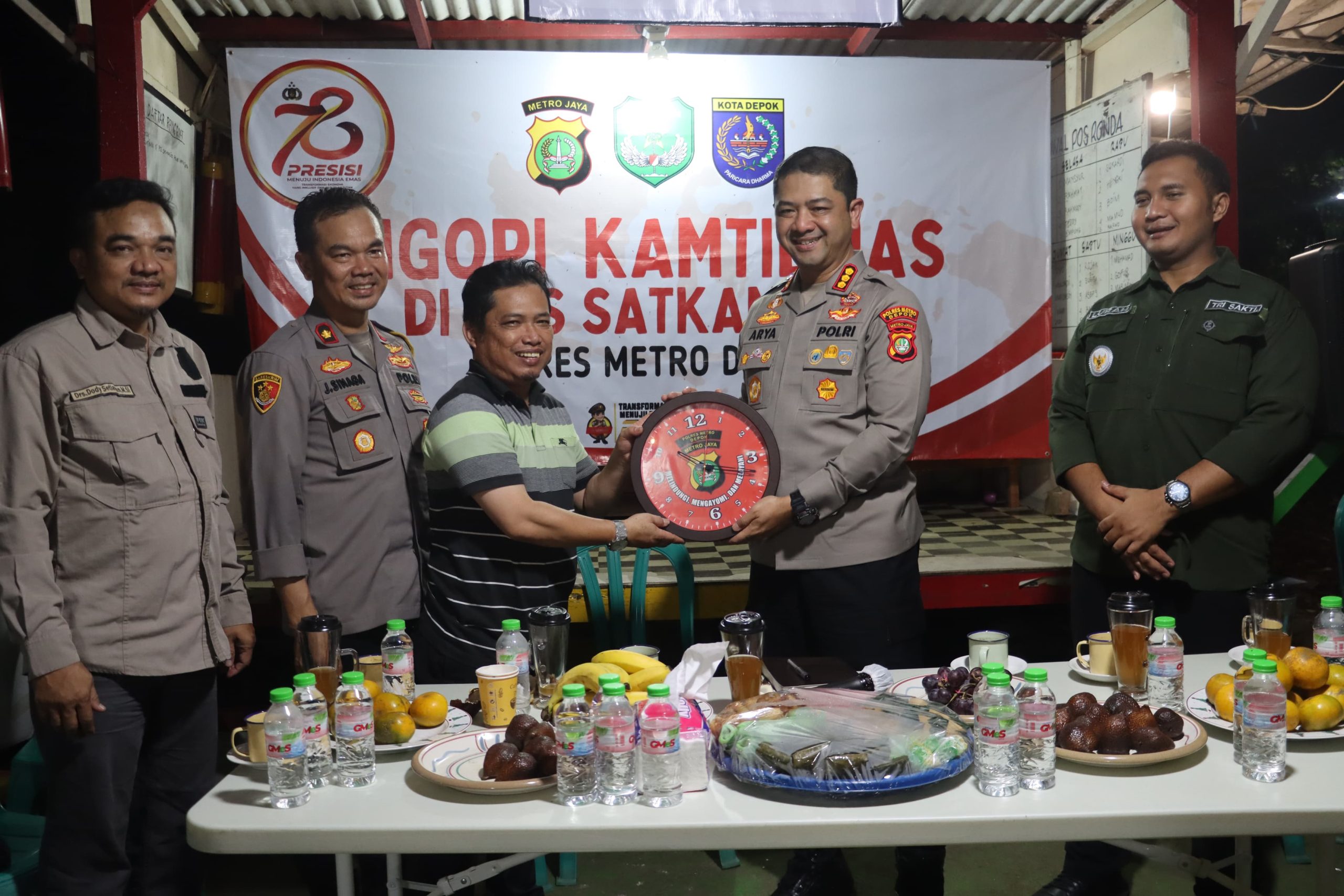 Depok – 27 Juni 2024 Kapolres Metro Depok Kombes Pol Arya Perdana S.H, S.I.K, M.Si, mengadakan kegiatan Ngopi Kamtibmas bersama warga di Pos Satkamling, Kelurahan Tugu, Kecamatan Cimanggis.