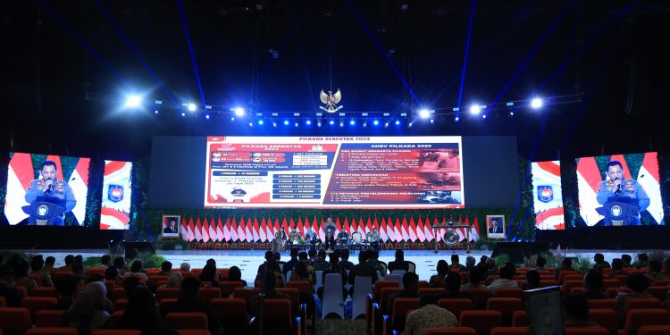 “Karena ini dilaksanakan serentak tentunya rekan-rekan harus mampu melihat mendalami potensi konflik yang terjadi sehingga kekuatan yang rekan-rekan miliki kita semua siap menghadapi potensi permasalahan apa pun,” lanjut Kapolri.