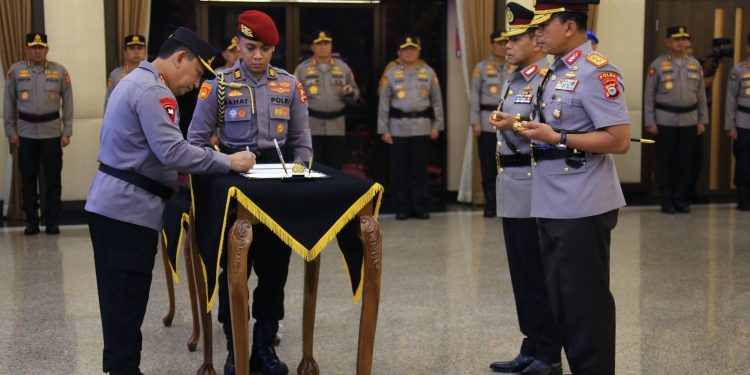 “Kapolri Jenderal Polisi Listyo Sigit Prabowo memimpin upacara pelantikan dan serah terima jabatan pejabat utama Mabes Polri Dan para Kapolda, serta upacara laporan kenaikan pangkat ke dan dalam golongan Pati Polri,” kata Kabag Penum Divisi Humas Polri Kombes Pol Erdi A Chaniago dalam keterangan tertulisnya, Sabtu (28/9/2024).