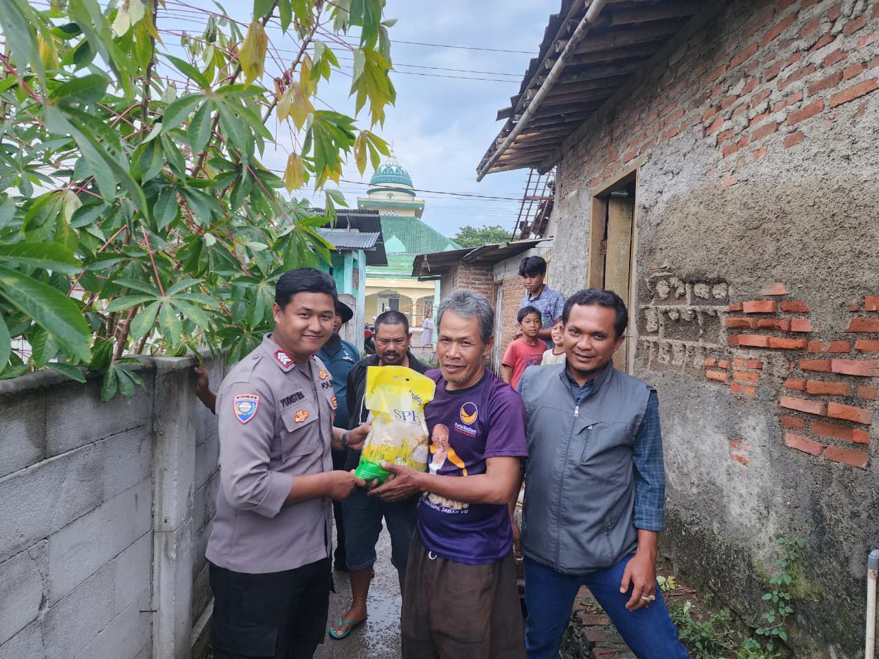 Bantuan tersebut disalurkan melalui Kanit Intel Aipda M. Farid dan Bhabinkamtibmas Brigpol Yudistira, dengan didampingi oleh Kadus Ilyas, Ketua RT 11 Ujang, Tokoh Masyarakat Jalal, serta Tokoh Agama Ustad Aswali.