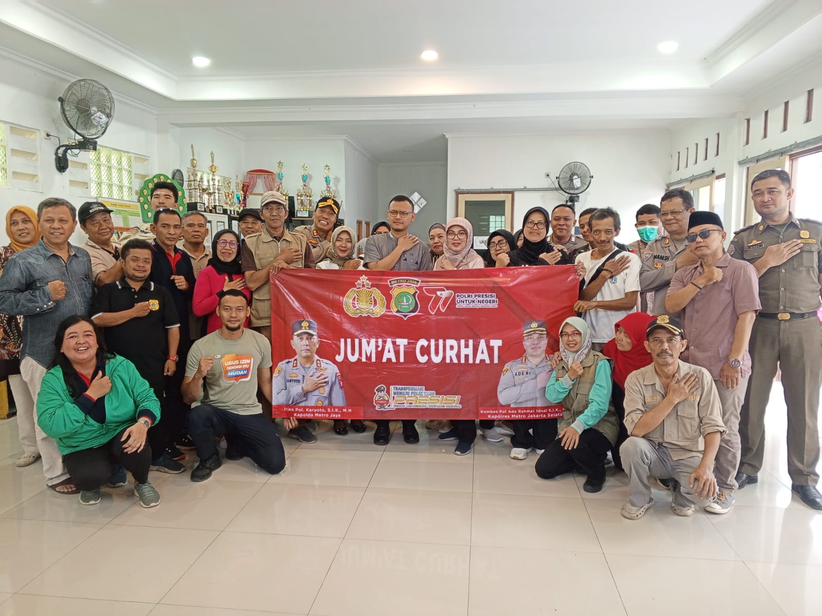 Jakarta Selatan, 17 Mei 2024 – Kapolsek Metro Kebayoran Baru, AKBP S F Aritonang, melaksanakan monitoring kegiatan “Jumat Curhat” di Sekretariat RW 10, Kelurahan Gandaria Utara, Kebayoran Baru, Jakarta Selatan. Acara ini bertujuan untuk mendengarkan keluhan dan masukan dari warga setempat serta memberikan sosialisasi terkait layanan call center 110.