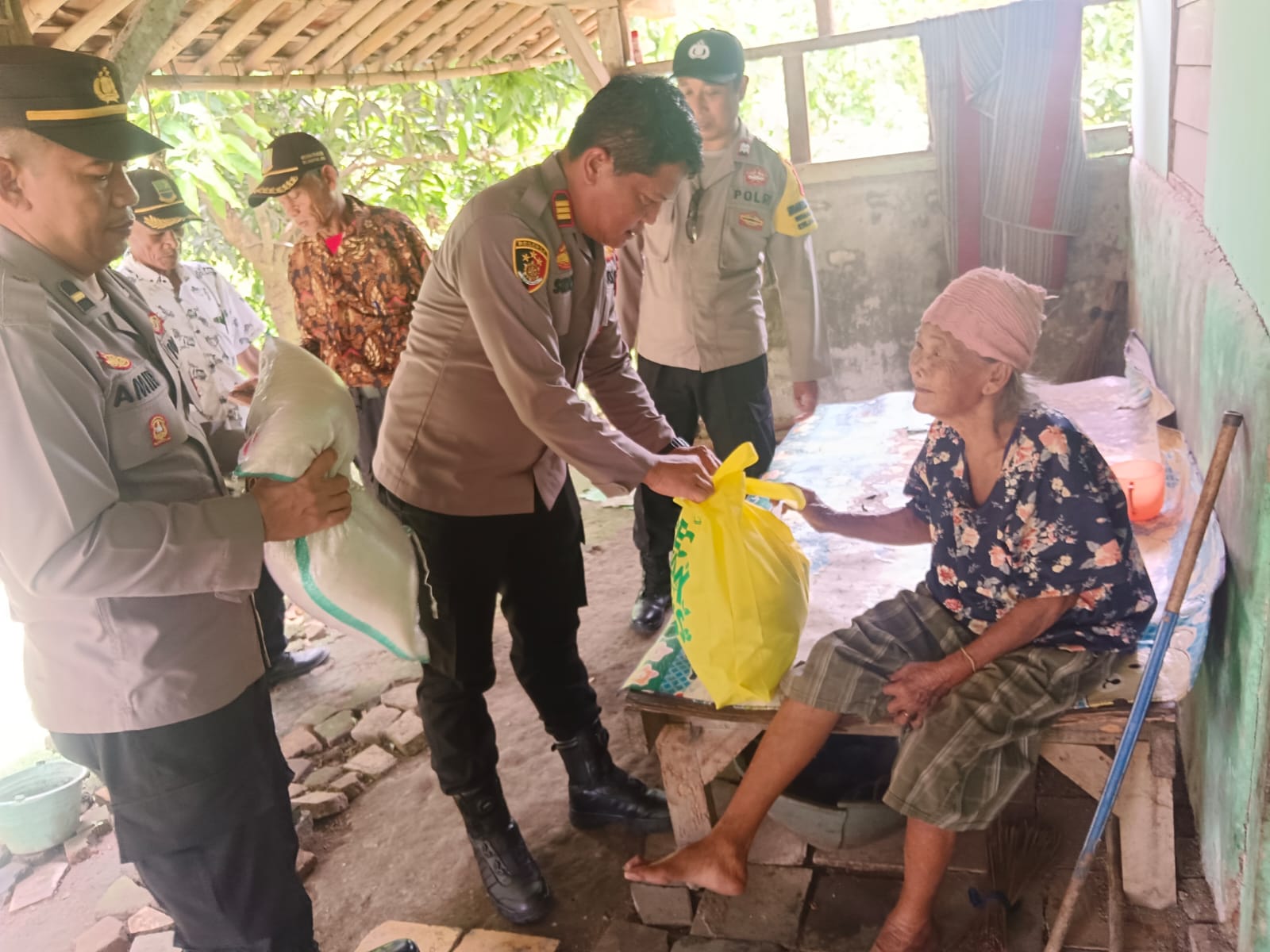 Kegiatan tersebut diisi dengan kunjungan ke rumah Ibu Saimah, seorang warga yang hidup sebatang kara dan tengah sakit. Dalam kesehariannya, Ibu Saimah bekerja sebagai pemulung botol bekas untuk memenuhi kebutuhan hidup. Melihat kondisi tersebut, Kapolsek Pebayuran memberikan dukungan moril serta bantuan paket sembako guna meringankan beban hidupnya.