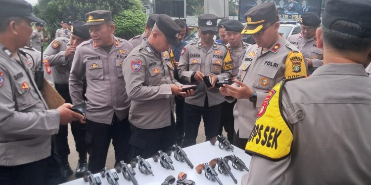 Terakhir, Kompol Bambang AS melakukan pengecekan kelayakan Senpi dan masa berlaku kartu pemegang Senpi yang dimiliki personel Polsek Pondok Aren.
