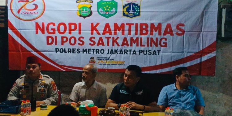Jakarta Pusat – Kasat Narkoba Polres Metro Jakarta Pusat AKBP Iver Son Manossoh melaksanakan kegiatan “Ngopi Kamtibmas” bersama warga di Pos Satkamling RW 04 Kelurahan Kampung Bali Kecamatan Tanah Abang Jakarta Pusat, pukul 19.30 WIB (17-7-2024).