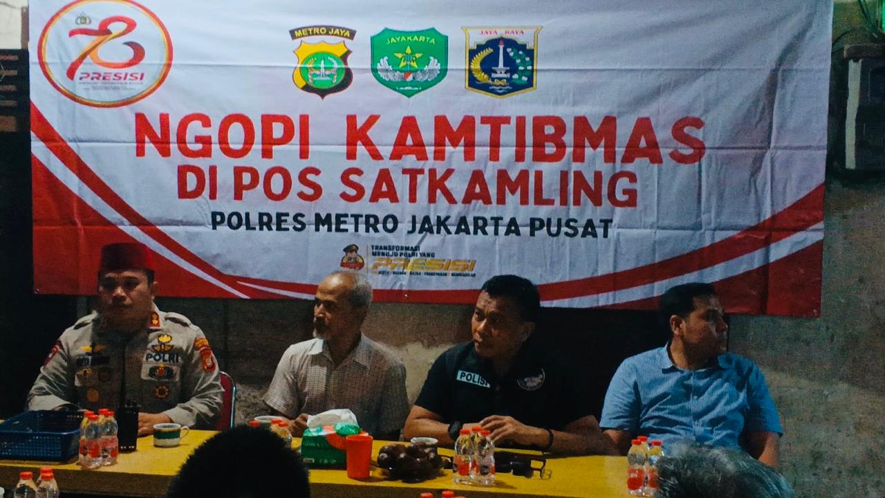 Giat “Ngopi Kamtibmas” dihadiri oleh Kapolsek Tanah Abang AKBP Aditya Simanggara, Kanit Reskrim, Kanit Bimas, Ketua RW 04 bersama pengurusnya, para Ketua RT, Bhabinkamtibmas, LMK, FKDM, Karang Taruna, Toga dan Tomas.