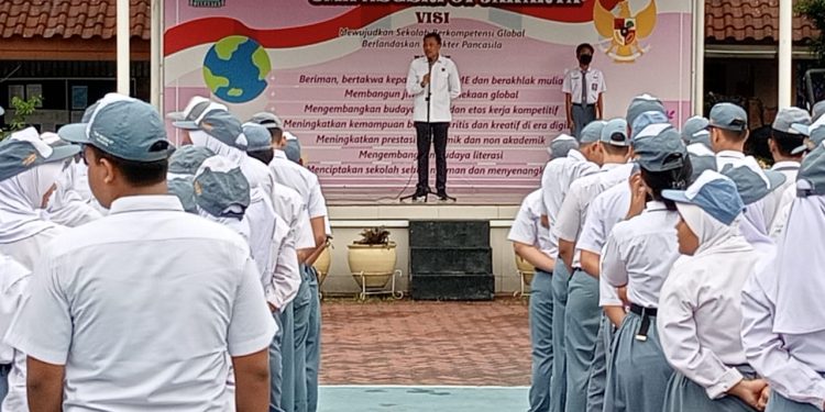 ” Pada kesempatan ini kami menghimbau kepada siswa sekalian agar fokus dalam menuntut Ilmu dan keterampilan serta tidak terlibat kenakalan remaja terutama tawuran minum miras dan narkoba. ” Himbau Armunanto.