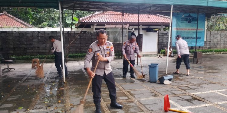 Jakarta Selatan – Dalam rangka mendukung program Jakarta ASRI (Aman, Sehat, Resik dan Indah), jajaran Polsek Kebayoran Lama melaksanakan kegiatan BANG JASRI (Bhayangkara Jakarta Asri) berupa kerja bakti (korve) di area Masjid Bung Hatta yang berada di kawasan Makam Bung Hatta, TPU Tanah Kusir, Kebayoran Lama, Jakarta Selatan, Senin (23/2/2026).