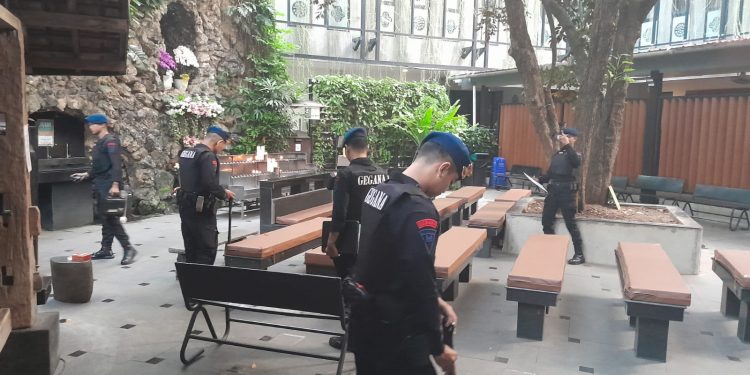 Kegiatan pengamanan melibatkan unit Jibom Gegana dan K9 Polda Metro Jaya untuk memastikan keamanan dan sterilisasi setiap sudut di area Geraja Katedral baik di luar maupun di dalam Gereja di cek menggunakan alat detektor sebelum kegiatan Ibadah dimulai.