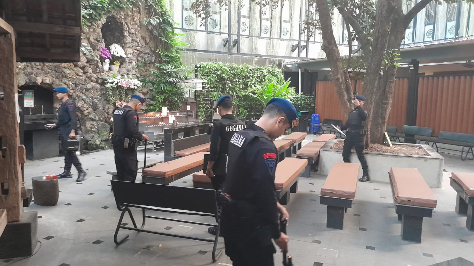 Kegiatan pengamanan melibatkan unit Jibom Gegana dan K9 Polda Metro Jaya untuk memastikan keamanan dan sterilisasi setiap sudut di area Geraja Katedral baik di luar maupun di dalam Gereja di cek menggunakan alat detektor sebelum kegiatan Ibadah dimulai.