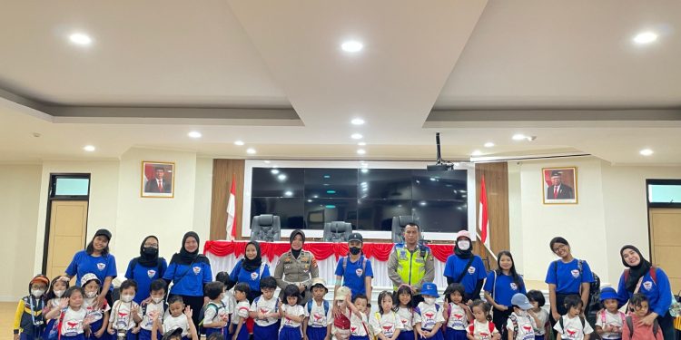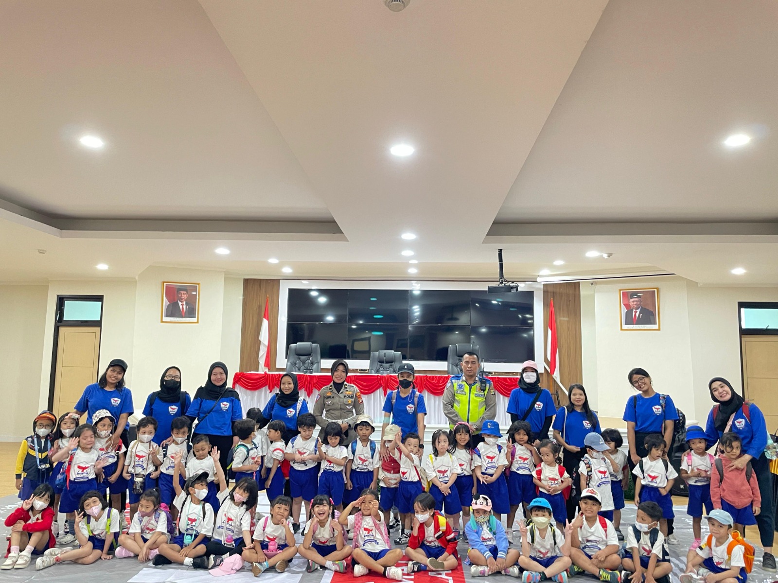 Puluhan anak dari TK Kreasi Anak Bangsa Pondok Jagung Kec. Serpong Utara kunjungi Mapolres Tangerang Selatan (Tangsel) pada selasa (6/2) pagi.