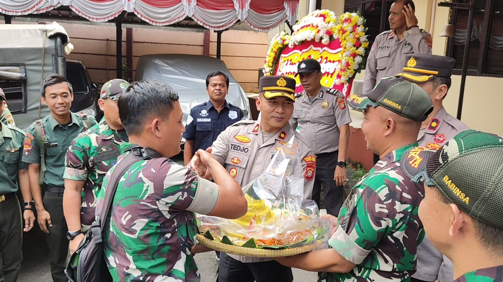 Sementara itu Serma Miftah selaku pihak Koramil sembari memberikan tumpeng mengucapkan langsung selamat hari Bhayangkara ke-78 kepada Kapolsek Pesanggrahan beserta jajarannya semoga kedepannya kemitraan TNI-Polri dalam menjaga Kamtibmas di wilayah Kecamatan Pesanggrahan dapat lebih ditingkatkan dan Polri dapat memenuhi harapan masyarakat sebagai pelindung, pengayom, dan pelayan masyarakat.