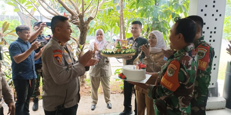 Jakarta Pusat – Koramil Tanah Abang di pimpin Wadanramil dan Kecamatan Tanah Abang di pimpin Wakil Camat Berikan Ucapan Hari Bhayangkara Ke 78 Tahun 2024 kepada Polsek Metro Tanah Abang di Polsubsektor Gelora Kawasan GBK Senayan Kelurahan Gelora Kecamatan Tanah Abang Jakarta Pusat. Senin (01/7/2024).