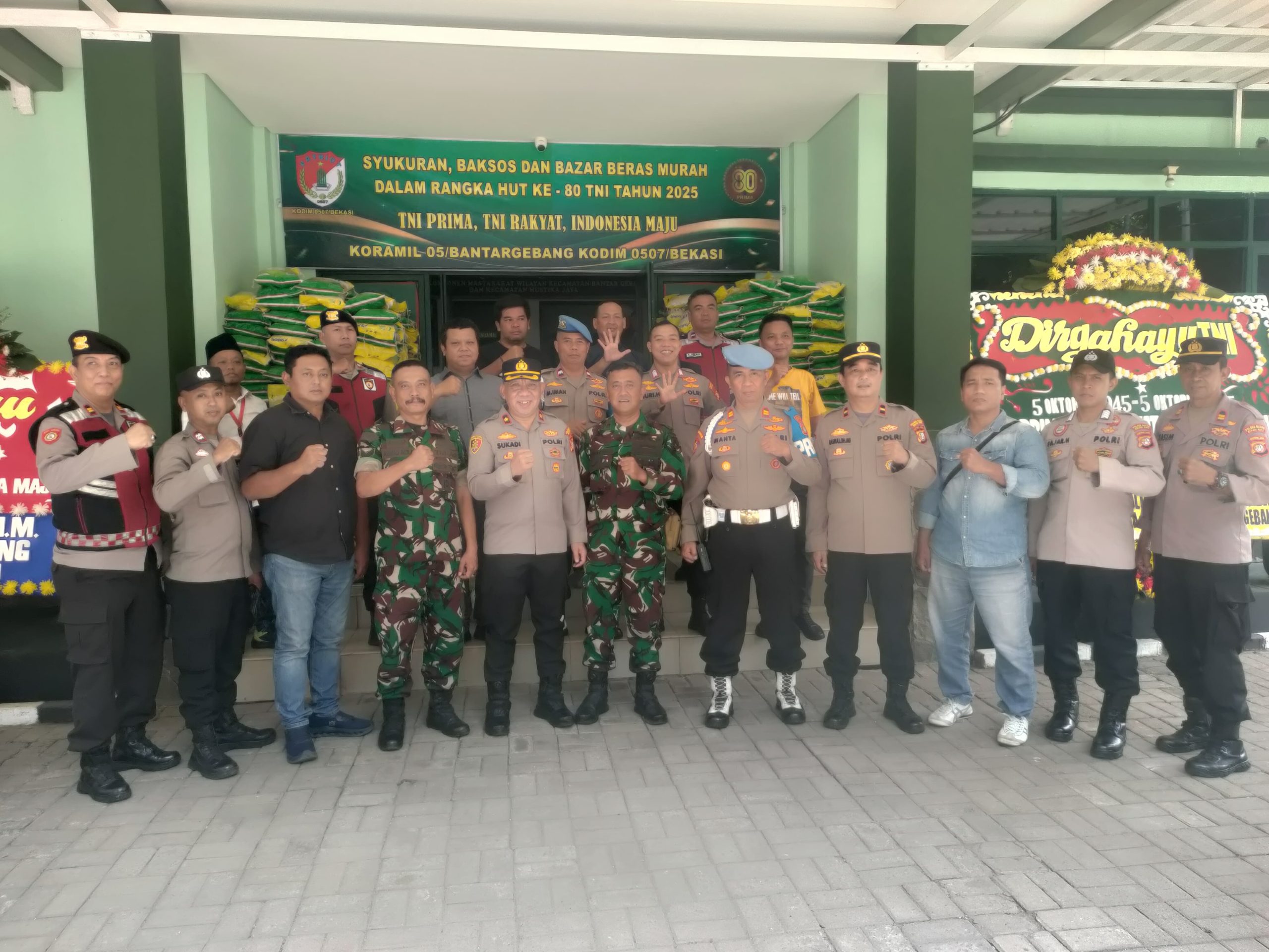 Dalam kesempatan penuh keakraban tersebut, Kapolsek Bantar Gebang Kompol Sukadi, SH., MM menyampaikan ucapan selamat Hari Ulang Tahun TNI ke-80 dengan tema: