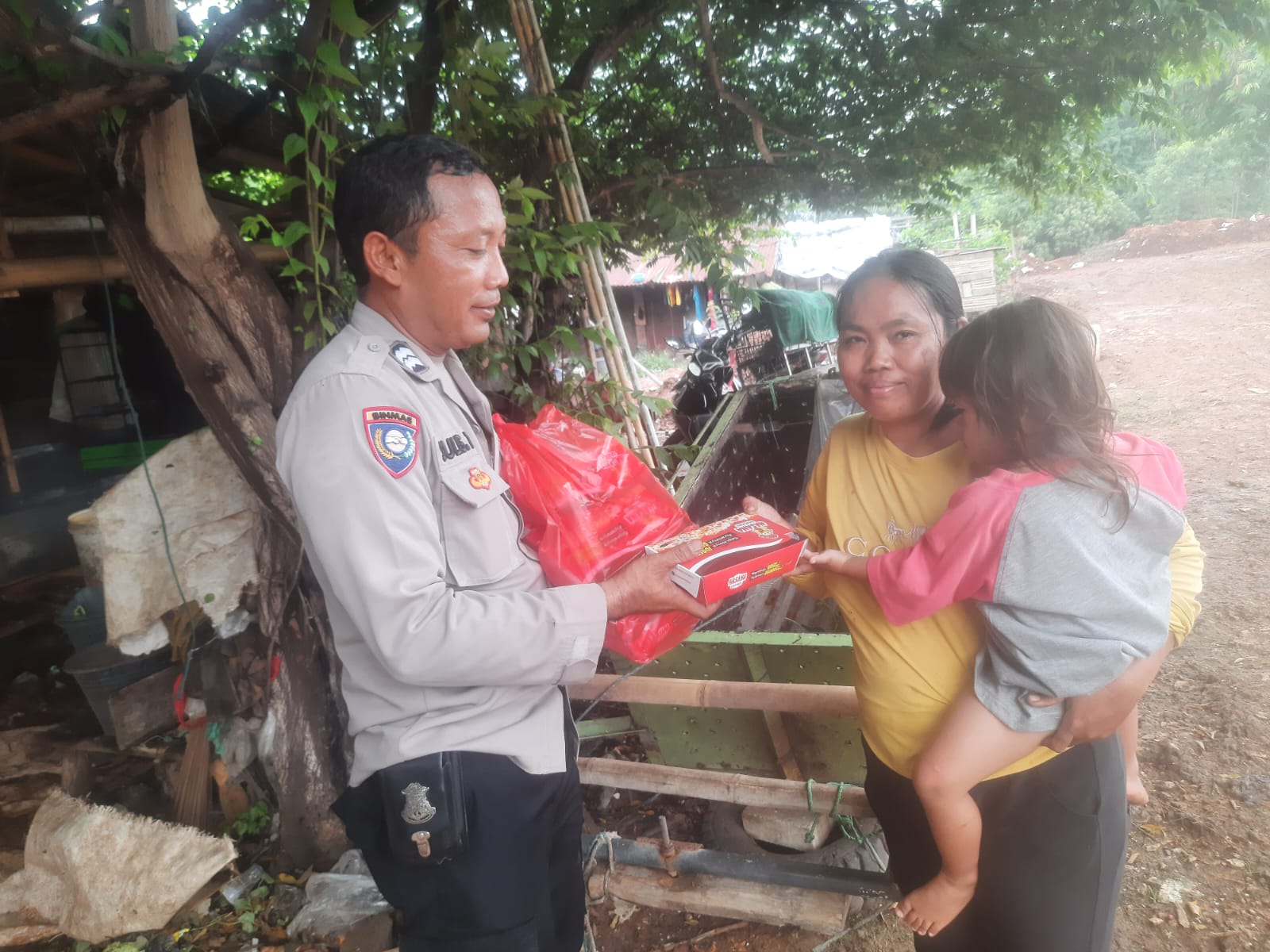 Bertempat di daerah slum area Jl. BKT ujung Menteng Cakung, Bhabinkamtibmas Kel. Ujung Menteng Polsek Cakung Polres Metro Jakarta Timur membagikan makanan siap saji kepada warga sekitar.