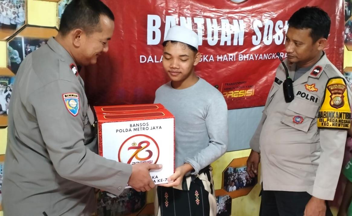 Jakarta Pusat – Aiptu Roby Danan Jaya Putra Bhabinkamtibmas Kelurahan Menteng dan Aipda Anwar Bhabinkamtibmas Kelurahan Pegangsaan membagikan bantuan sosial berupa paket sembako yang dibagikan kepada anak-anak Yatim Piatu. Rabu (19/6/2024).