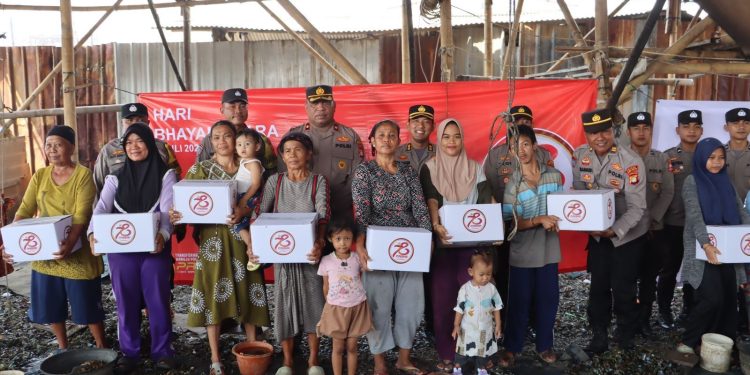 Jakarta – Dalam rangka menyambut hari jadi Bhayangkara ke-78 Polri melaksanakan kegiatan Bantuan Sosial dengan membagikan bantuan paket sembako kepada warga nelayan di Muara Angke, Pluit Penjaringan Jakarta Utara.