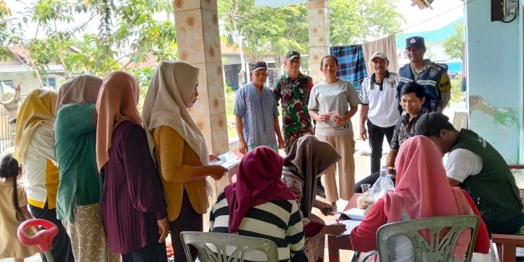 Bhabinkamtibmas Desa Karangjaya Bripka Aep Saefulloh bersama Babinsa Serma Yanto melaksanakan monitoring penyaluran Bantuan Langsung Tunai Sosial (BLTS) di Rumah PSM, RT 02 RW 01 Kampung Pulopipisan, Desa Karangjaya, Kecamatan Pebayuran, Kabupaten Bekasi, Jumat (28/11/2025) pukul 09.00 WIB.