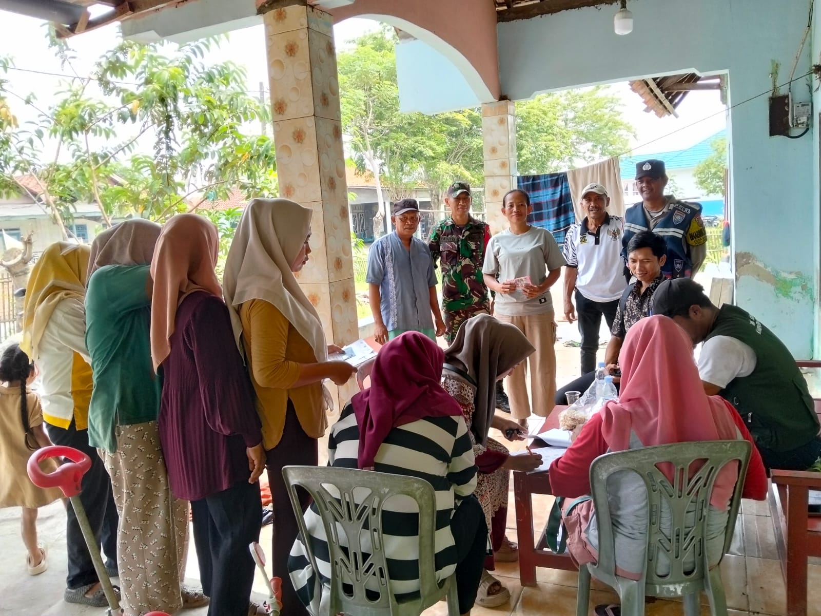 Bhabinkamtibmas Desa Karangjaya Bripka Aep Saefulloh bersama Babinsa Serma Yanto melaksanakan monitoring penyaluran Bantuan Langsung Tunai Sosial (BLTS) di Rumah PSM, RT 02 RW 01 Kampung Pulopipisan, Desa Karangjaya, Kecamatan Pebayuran, Kabupaten Bekasi, Jumat (28/11/2025) pukul 09.00 WIB.