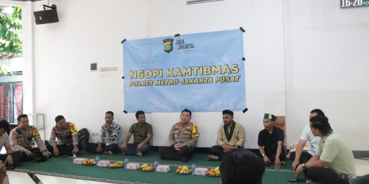 Jakarta Pusat – Kapolres Metro Jakarta Pusat, Kombes Pol Susatyo Purnomo Condro, menghadiri kegiatan “Ngopi Kamtibmas” bersama pengurus Himpunan Mahasiswa Islam (HMI) Jakpustara di Sekretariat HMI, Jalan Cilosari No. 17, Menteng, Jakarta Pusat, Selasa (7/10/2025) sore.