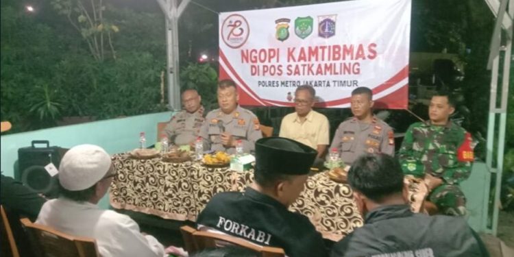 Jakarta – Kapolsek Pasar Rebo Kompol Haris Akhmat Basuki, SH, SIK, MH diwakili Kanit Binmas AKP Dwi Prasetyo. N, SH, menggelar Ngopi Kamtibmas bersama 4 Pilar di Pos Kamling RT 003, RW 006 Jl. Pedati Selatan Kel. Cijantung, Kec. Pasar Rebo, Jakarta Timur, pada Minggu (21-07-2024) malam.