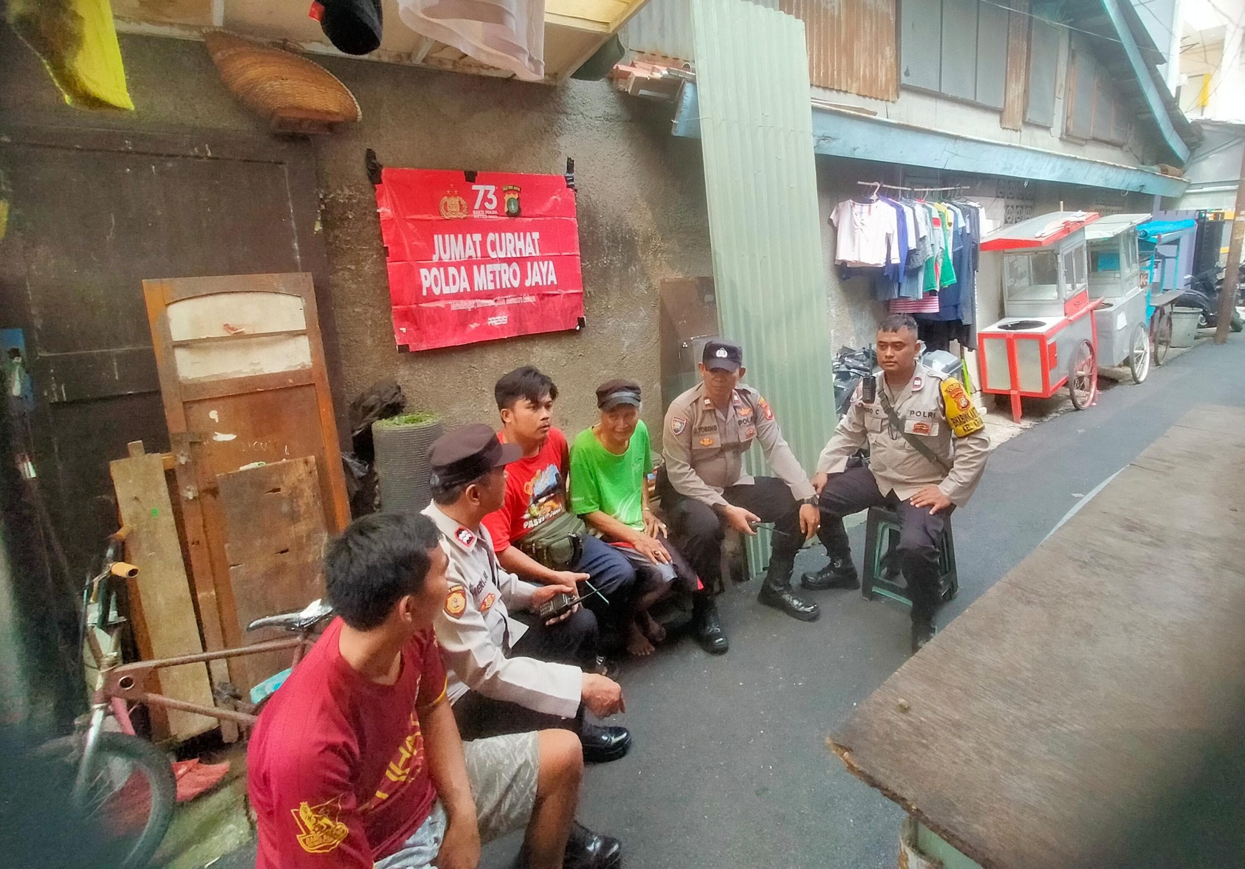 Jakarta Pusat – Panit Binmas Polsek Senen Aiptu Juber Wariston bersama anggota melaksanakan kegiatan Jum’at Curhat bersama warga di Jl. Kembang Pacar RT 01/01 Kelurahan Kramat Kecamatan Senen Jakarta Pusat. Jumat (10/5/2024).