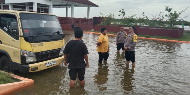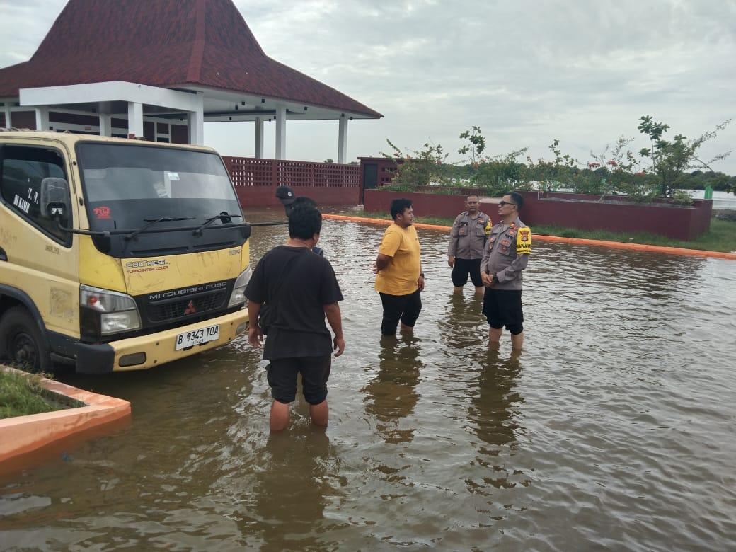 Dengan ketinggian air mencapai 50 cm, AKP Sulyono turun langsung ke lapangan untuk memastikan keamanan warga dan meninjau lokasi-lokasi yang berpotensi terdampak. Pemantauan dilakukan di titik-titik strategis yang selama ini menjadi daerah rawan banjir rob.