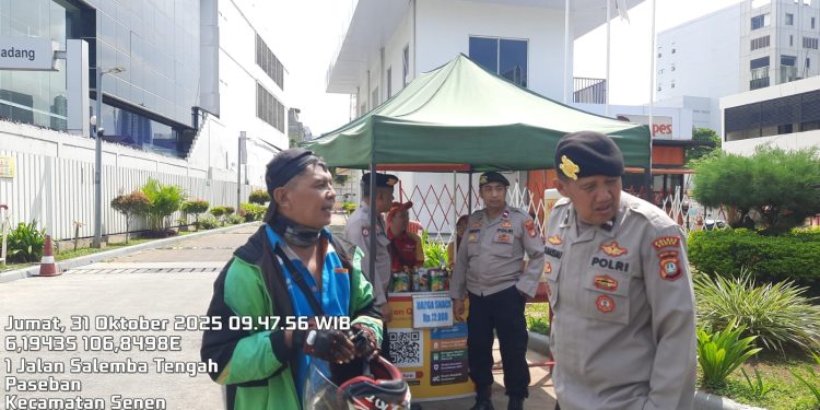 Jakarta – Personel Samapta Polsek Senen melaksanakan kegiatan patroli mobile dan sambang ke SPBU Shell di Jalan Salemba Raya, Kelurahan Paseban, Kecamatan Senen, Jakarta Pusat, pada Jumat (31/10/2025).