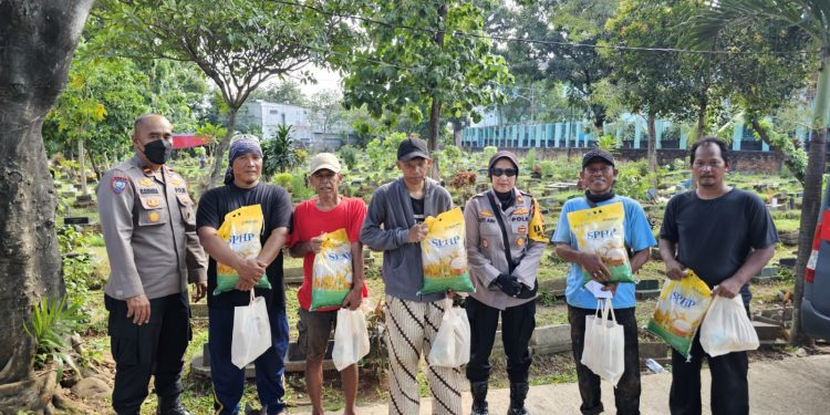 Jakarta – Pihak kepolisian dari Polsek Kramatjati menyalurkan bantuan sosial kepada petugas makam dan penggali kubur dan warga yang tinggal di TPU Datok Merah Jl. Datok Merah Rt. 005/06 Kel. Batu Ampar Kec. Kramatjati Jakarta Timur.