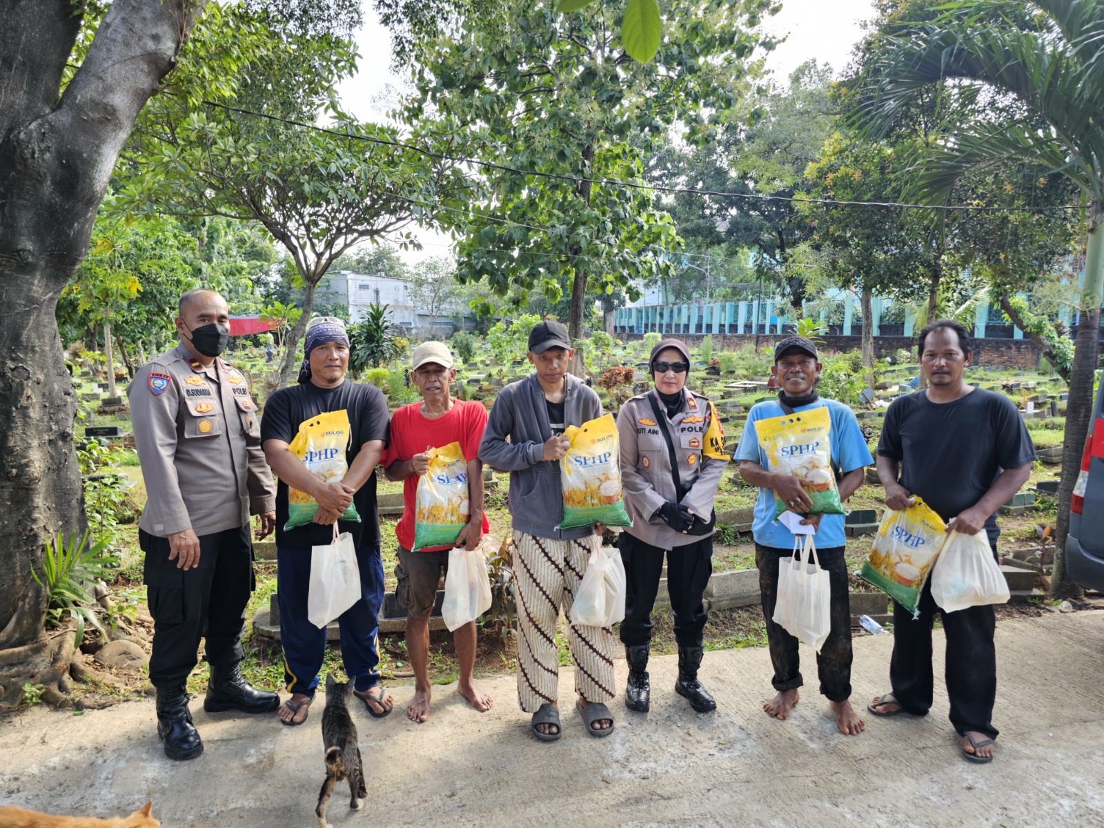 “kepolisian khususnya Polsek Kramatjati telah melaksanakan kegiatan pembagian paket sembako sebanyak 60 Paket di daerah slum area dengan sasaran para penggali makam dan warga sekitar,” kata Kapolsek.