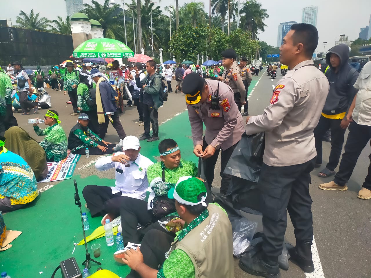 Jakarta — Kepolisian mengerahkan sebanyak 1.060 personel gabungan untuk memberikan pelayanan kepada peserta aksi unjuk rasa Perkumpulan Guru Madrasah (PGM) Indonesia di depan Gedung DPR/MPR RI, Jakarta Pusat, Rabu (11/2/2026). Kehadiran petugas di lapangan bertujuan memastikan kegiatan penyampaian pendapat di muka umum berjalan aman, tertib, dan kondusif.