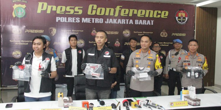 Jakarta Barat, Polres Metro Jakarta Barat menggelar konferensi pers terkait pengungkapan kasus penyalahgunaan narkotika jenis ganja yang melibatkan artis Yogi Gamblez dan Epy Kusnandar.