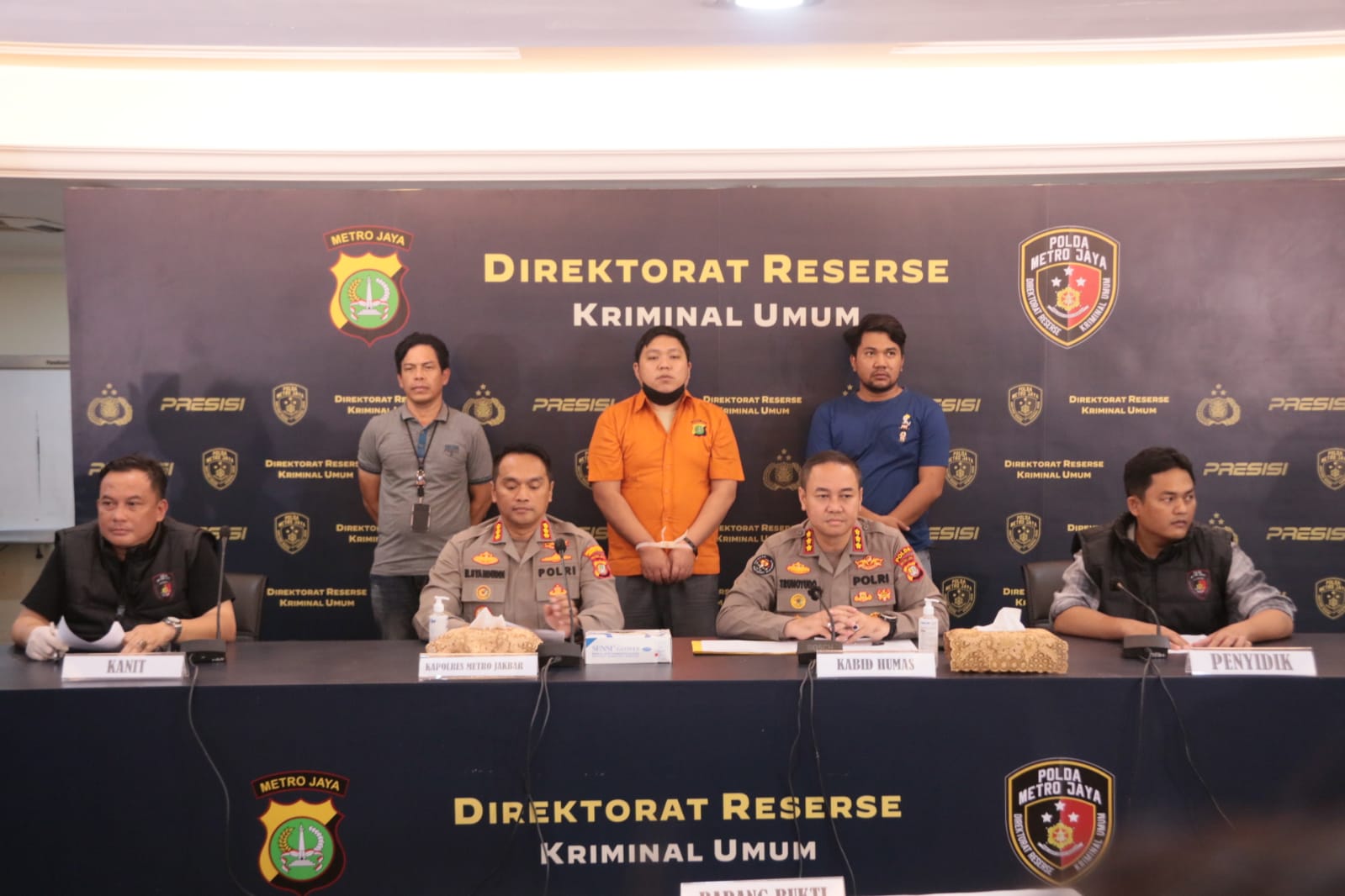Polda Metro Jaya menggelar konferensi pers terkait aksi koboi yang dilakukan pria yang menggunakan pelat mobil dinas Polri di Ruas Tol Dalam Kota beberapa waktu lalu. Pelaku bernama David Yulianto disebut melakukan aksi penganiayaan dan juga menodongkan senjata api jenis airsoft gun kepada sopir taksi online, Hendra Hermansyah (41).