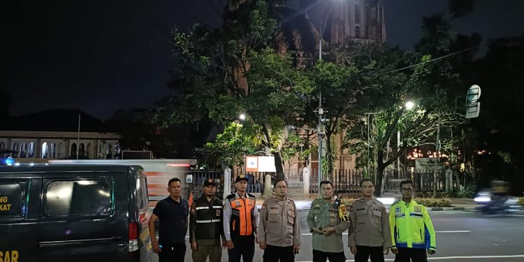 Jakarta Pusat — Selesai Sholat Tarawih di bulan suci Ramadhan jelang malam hari Tiga Pilar Kecamatan Sawah Besar melaksanakan Apel dan Patroli Mobile 3 Pilar guna mengantisipasi gangguan kamtibmas di wilayah hukum Polsek Sawah Besar, Polres Metro Jakarta Pusat, Selasa (24/2/2026) pukul 22.45 WIB Kegiatan dipimpin IPTU Syafrizal dengan sasaran kawasan Lapangan Banteng, Masjid Istiqlal, dan Gereja Katedral untuk menjaga situasi tetap aman menjelang tengah malam.