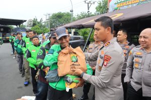 Acara juga diisi dengan penyerahan bantuan sosial berupa paket sembako kepada seluruh pengurus dari komunitas ojol, sebagai bentuk kepedulian Polres terhadap kesejahteraan para driver ojol.