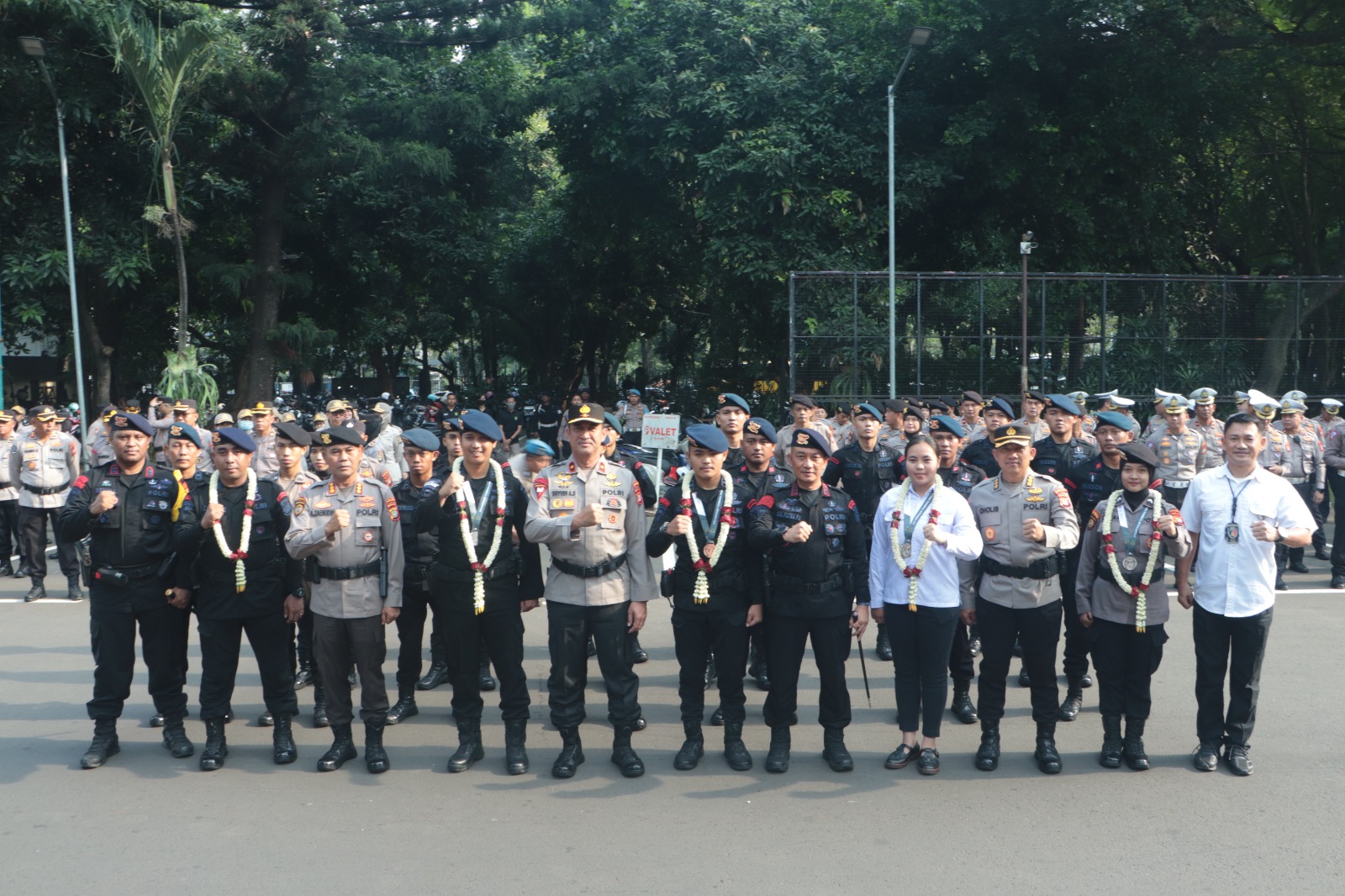 Anggota Polda Metro Jaya yang diberikan pengalungan bunga atas prestasi yang dicapainya antara lain: