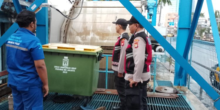 Jakarta Pusat – Personel Polsek Sawah Besar melaksanakan pemantauan dan pengecekan ketinggian air Kali Ciliwung di Pompa Air Industri, Jalan Gunung Sahari Raya, Sawah Besar, Jakarta Pusat, Senin (9/2/2026) pagi.