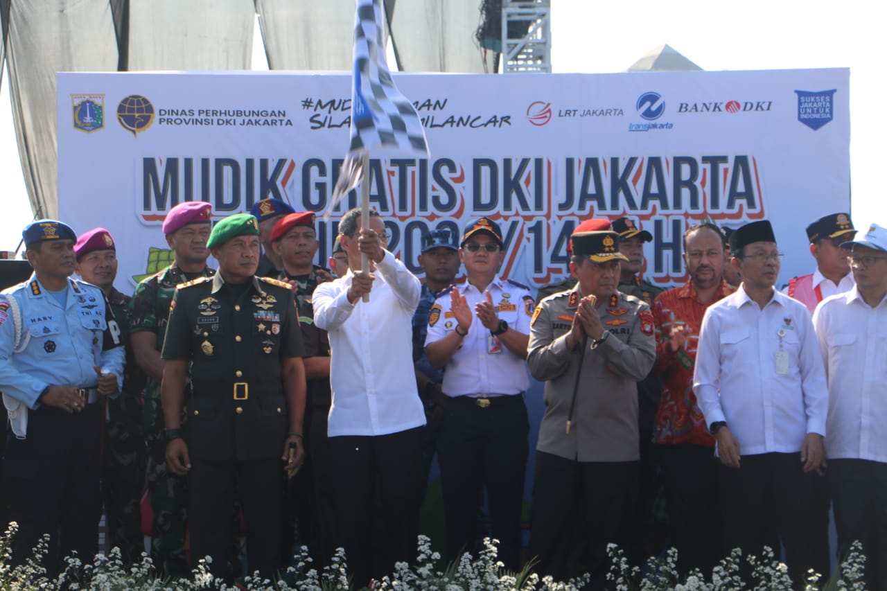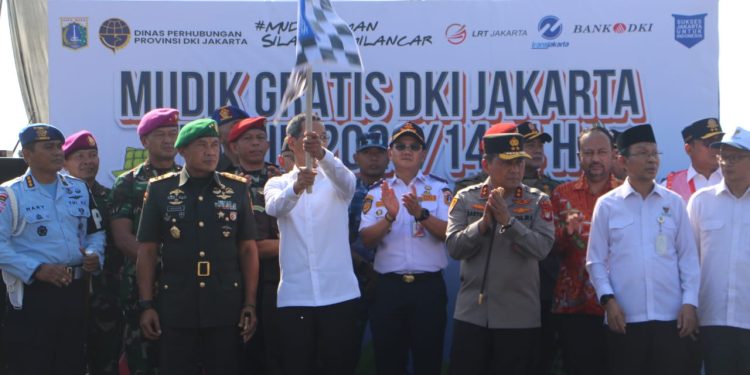 POLDA METRO JAYA – Pemprov DKI Jakarta menggelar program mudik gratis dalam perayaan lebaran Idul Fitri 2023, Pelepasan mudik gratis digelar hari ini di Monas, Jakarta Pusat, Senin (17/4/2023).