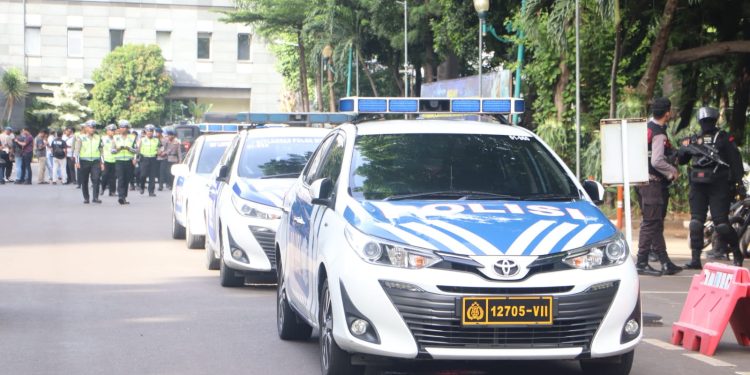 Jakarta – Personel Polda Metro Jaya melakukan patroli skala besar sebagai bagian operasi Mantap Brata pengamanan Pemilu 2024. Polisi berpatroli menyisir beberapa lokasi rawan gangguan keamanan dan ketertiban masyarakat.