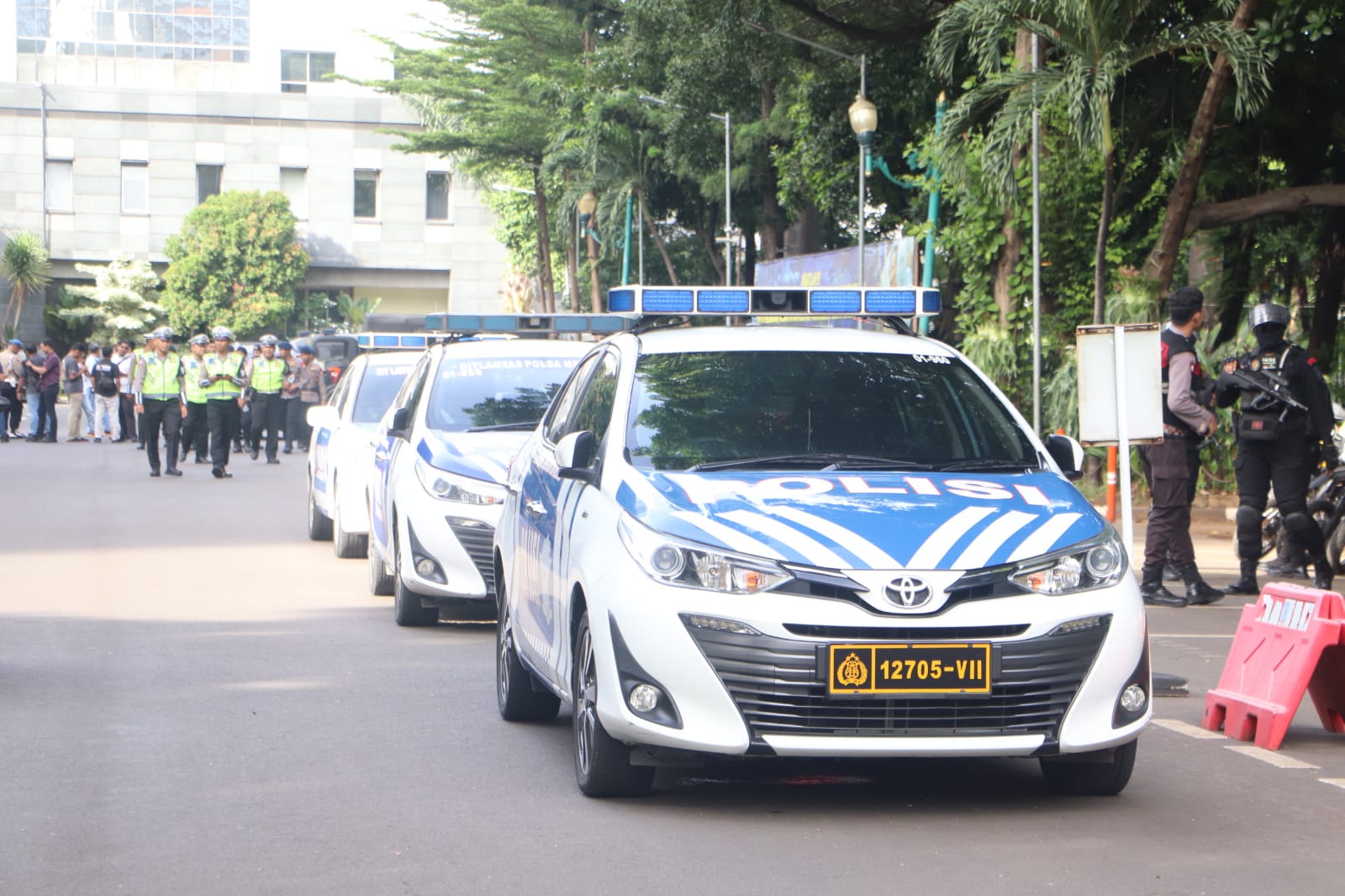 Jakarta – Personel Polda Metro Jaya melakukan patroli skala besar sebagai bagian operasi Mantap Brata pengamanan Pemilu 2024. Polisi berpatroli menyisir beberapa lokasi rawan gangguan keamanan dan ketertiban masyarakat.