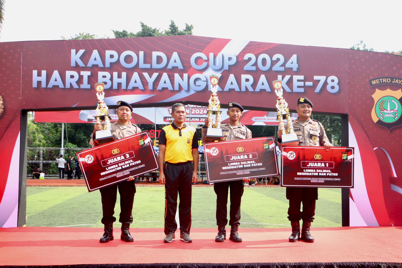 Jakarta – Kapolda Metro Jaya Irjen Pol Karyoto yang diwakili oleh Kepala Biro Sumber Daya Manusia Kombes Pol Langgeng Purnomo pimpin Upacara Penutupan rangkaian kegiatan Kapolda Cup Tahun 2024 sekaligus pemberian hadiah kepada para pemenang perlombaan. Jumat (28/06/2024).