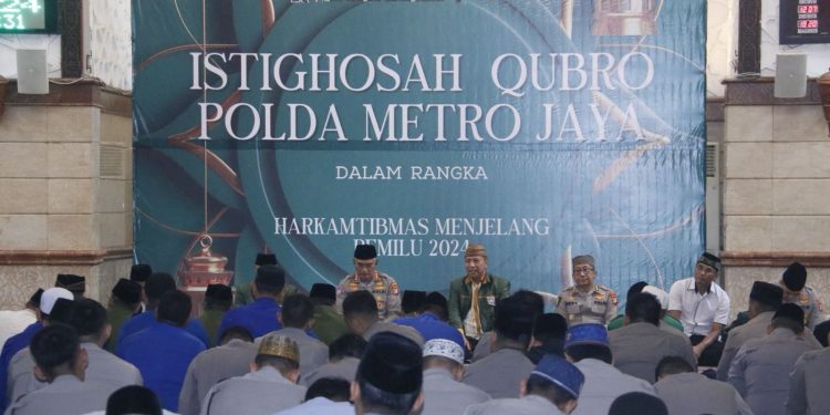 Jakarta – Dirbinmas Polda Metro Jaya Kombes Pol. Badya Wijaya mewakili Kapolda Metro Jaya Irjen Pol Karyoto menghadiri Istighosah Qubro dalam rangka Harkamtibmas menjelang Pemilu 2024 di Masjid Al Kautsar Polda Metro Jaya. Selasa (06/02/24)