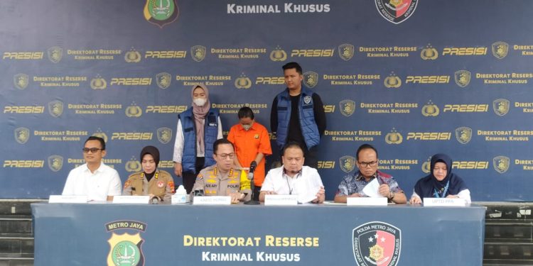 Jakarta – Polda Metro Jaya menggelar Konferensi Pers terkait ungkap kasus dugaan penyebaran dokumen elektronik yang bermuatan asusila yang diduga dilakukan oleh seorang ibu muda berinisial R (22) terhadap anaknya yang saat kejadian berusia 3 tahun lebih/hampir 4 tahun, di Gedung Ditreskrimum Polda Metro Jaya, Rabu (05/06/2024).