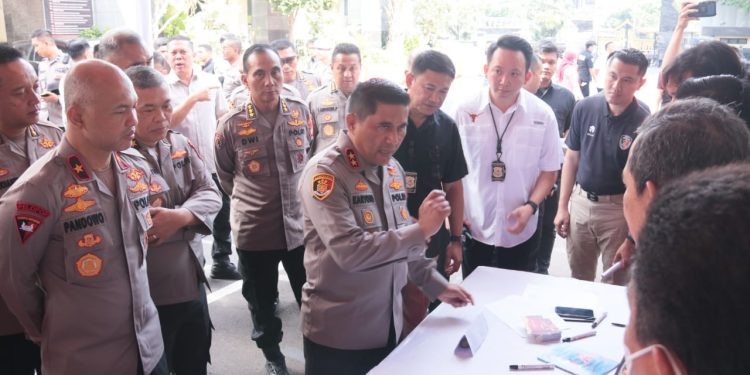 POLDA MERO JAYA – Kapolda Metro Jaya Irjen Karyoto meresmikan Pasar Murah Sembako Polda Metro Jaya bagi personil berlokasi di Lapangan Ditreskrimsus Polda Metro Jaya, Jakarta Selatan, kamis (6/4/2023).