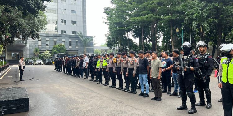Jakarta – Personel Polda Metro Jaya melakukan patroli skala besar sebagai bagian operasi Mantap Brata pengamanan Pemilu 2024. Polisi berpatroli melalui beberapa lokasi rawan gangguan keamanan dan ketertiban masyarakat.