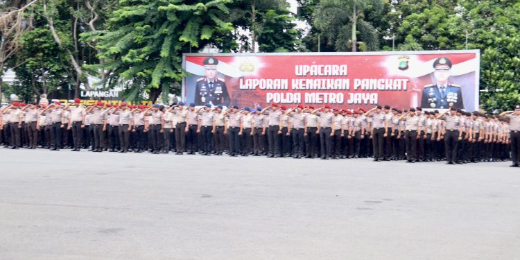 JAKARTA – Polda Metro Jaya menggelar upacara kenaikan pangkat Periode 1 Januari 2024 bagi Seluruh Pamen, Pama dan Bintara Satker Polda Metro Jaya di lapangan Presisi DitLantas Polda Metro Jaya. Minggu (31/12/2023).