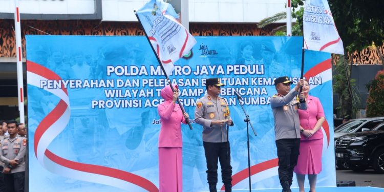 Jakarta – Polda Metro Jaya memberangkatkan bantuan kemanusiaan untuk korban bencana alam di Aceh, Sumatra Utara (Sumut), dan Sumatra Barat (Sumbar). Pelepasan bantuan dilakukan di Mapolda Metro Jaya, Senin (1/12/2025) siang, dipimpin Kapolda Metro Jaya didampingi Ibu Ketua Bhayangkari Daerah Metro Jaya dan Wakapolda Metro Jaya serta Ibu Wakil Ketua Bhayangkari Daerah Metro Jaya.